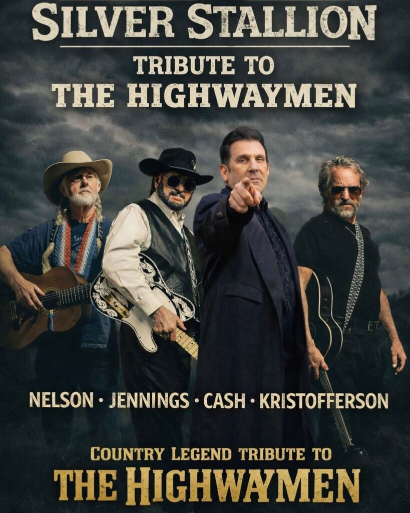 Silver Stallion brings the legendary sound of The Highwaymen back to the stage, honoring the iconic music of Willie Nelson, Waylon Jennings, Johnny Cash, and Kris Kristofferson. With authentic vocals, tight musicianship, and the unmistakable outlaw spirit, this tribute captures the heart of a generation.